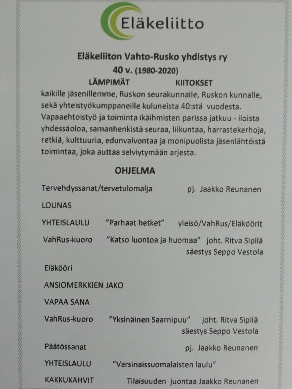 Eläkeliiton Vahto-Rusko yhdistys ry 40v